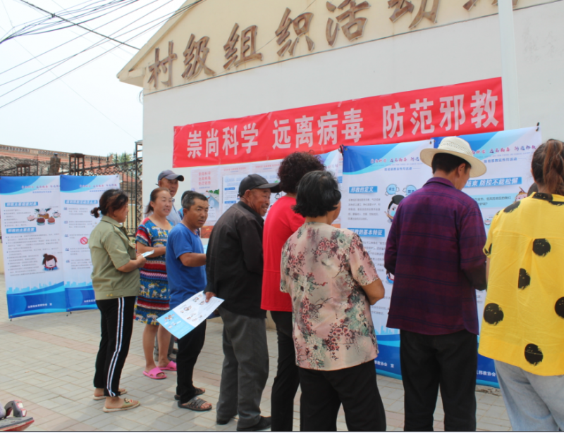 (志愿者走訪入戶發(fā)放宣傳資料、講解反邪教知識)